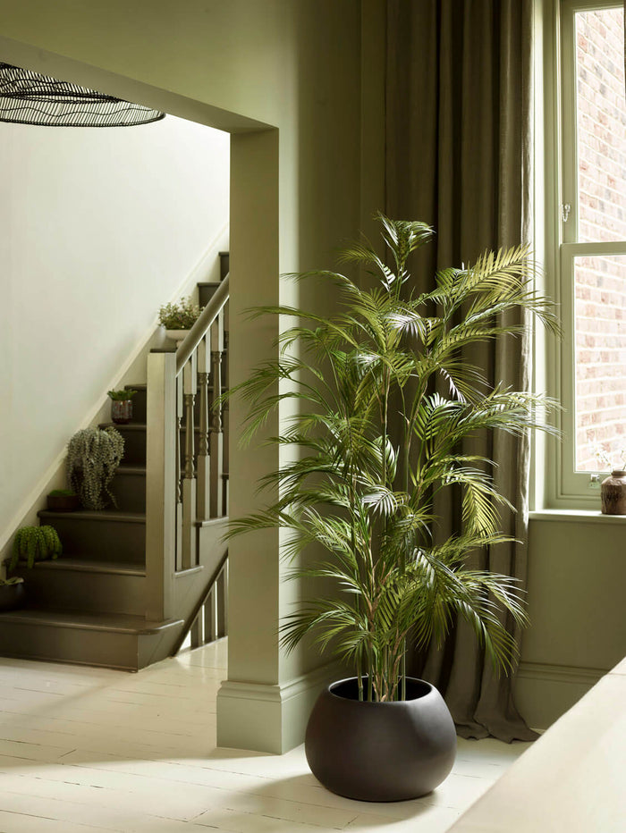 We work from reference photos, mood boards, and consultation discussions to develop design solutions for your space. Our artificial arrangements can coordinate with existing room colours, add visual interest to darker areas, or provide greenery in challenging locations like under-stair spaces or low-light basements. We design potted arrangements for shelving and other interior applications to address specific areas requiring enhancement.