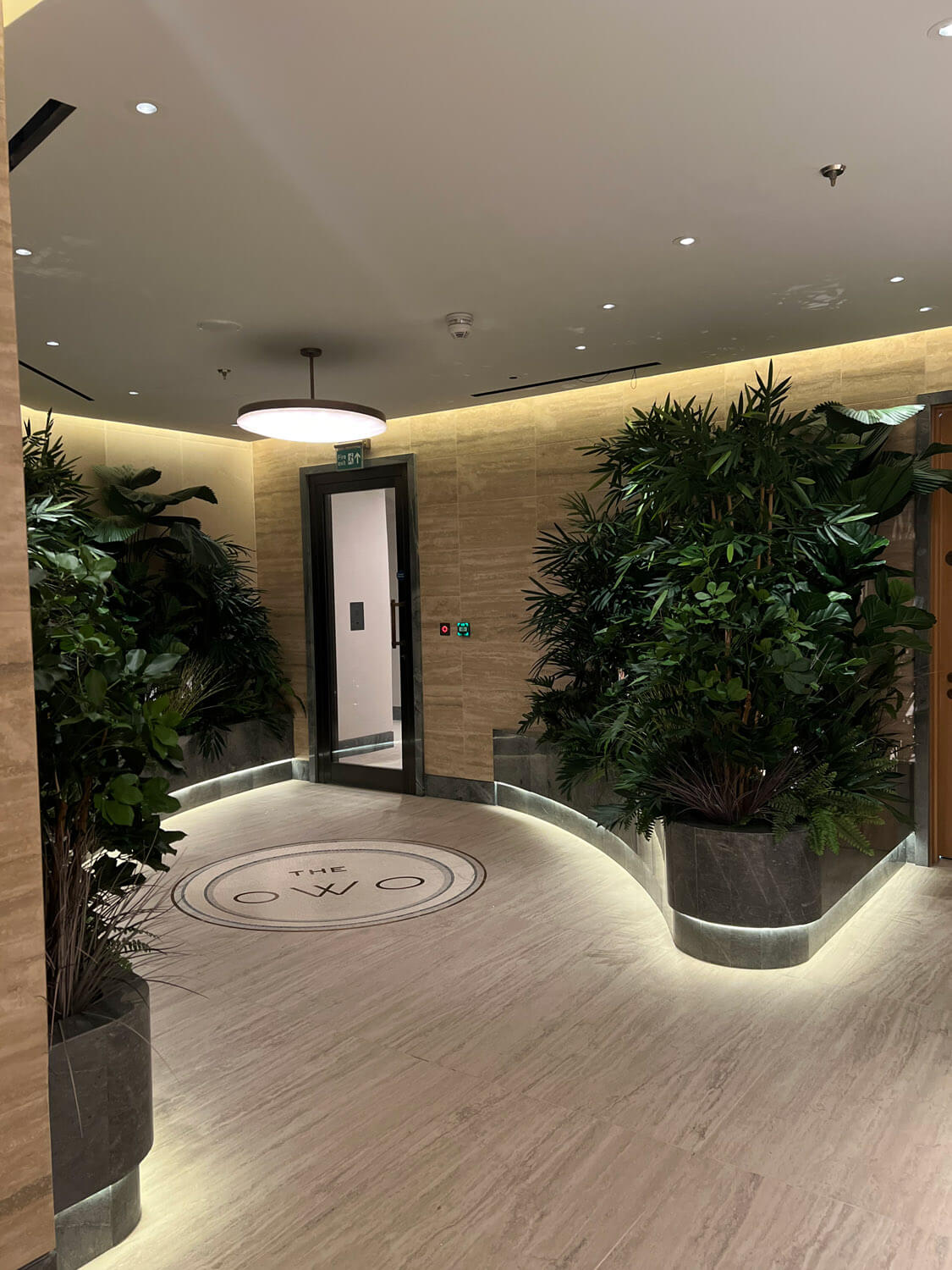 We were invited to the spectacular wellness area at the Old War Office Raffles Hotel in Central London. This beautiful two-floor spa complex presented several design challenges across multiple areas. They wanted us to look at the built-in banquette seating in the reception area, the void space beneath the circular staircase by the swimming pool, and the reception's walk-in planters.