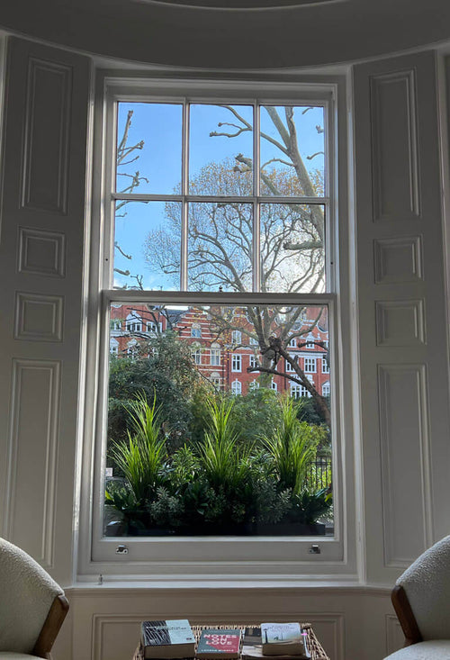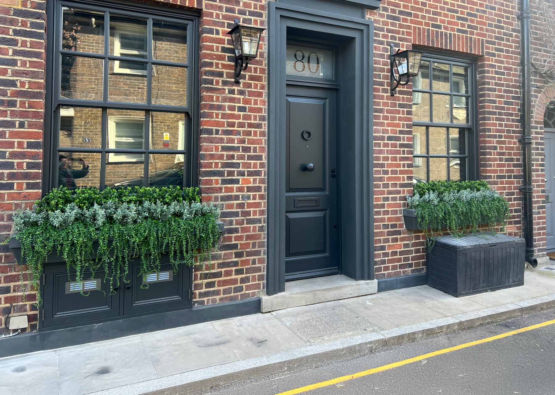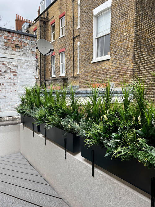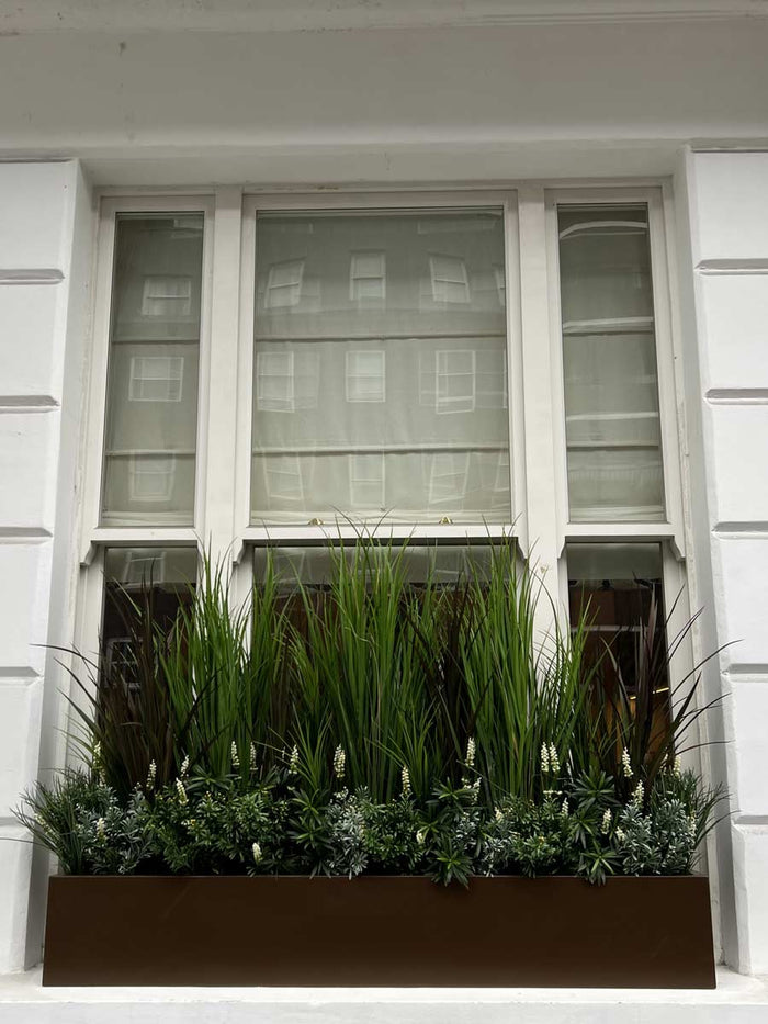 Our window boxes soften harsh edges and breathe warmth into cold spaces. Proportioned with care and designed to feel like they've grown there naturally over time. These beautiful additions bring lush greenery to your facade, creating a welcoming walk-up garden that transforms your building with understated sophistication.